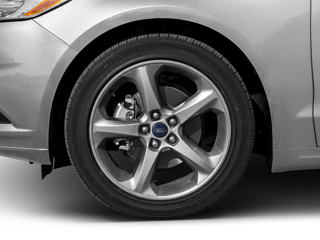 The sleek, aerodynamic exterior of the Fusion SE is complemented by 17-inch alloy wheels, body-color bumpers, and power-adjustable side mirrors with turn signal indicators. Inside, the cabin offers a comfortable and well-appointed environment, featuring cloth front bucket seats, a power driver's seat, and a split-folding rear seat for added versatility.