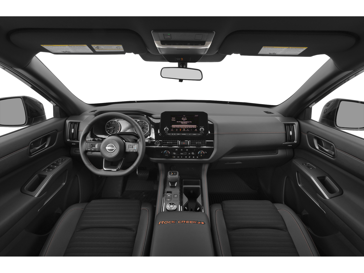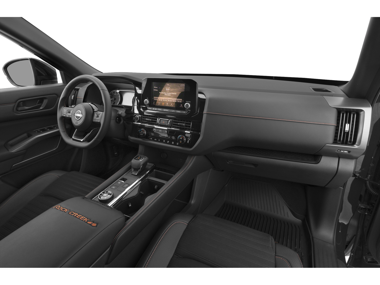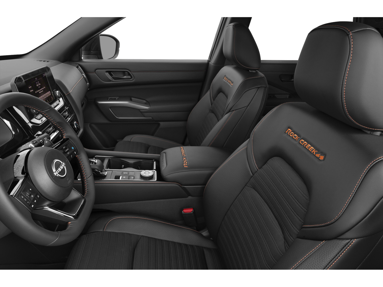 Step inside the Pathfinder Rock Creek and you'll be greeted by a spacious and versatile interior, designed with your comfort and convenience in mind. Enjoy the convenience of dual-zone automatic climate control, the connectivity of NissanConnect with Apple CarPlay and Android Auto, and the added security of Nissan's advanced safety features, including Rear Parking Sensors and Electronic Stability Control.